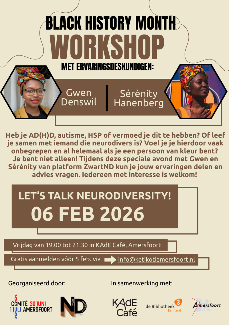 We hebben de hele maand februari interessante lezingen en workshops tijdens de Black History Month. Zie onze socials voor meer details en de onderstaande flyers. Mis het niet en meld je aan via info@ketikotiamersfoort.nl
